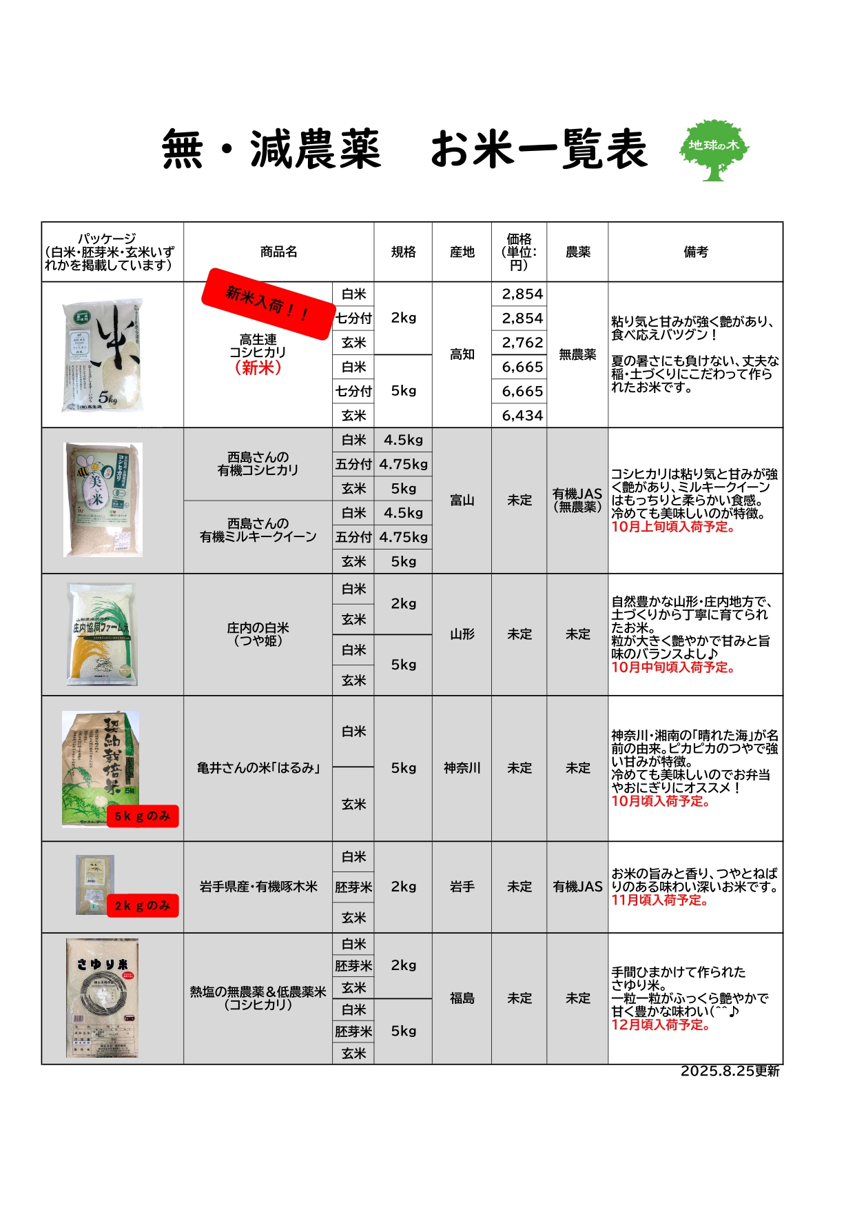 新米入荷しました!! 2025.08.25 おすすめ商品, 米・穀類・粉など 本日、高知(高生連)の新米が入荷しました✨詳細は下記画像をご覧ください(^^♪ おすすめ商品, 米・穀類・粉など 最大半額セールのお知らせ(8月)🌻前の記事 最大半額セールのお知らせ(9月)次の記事